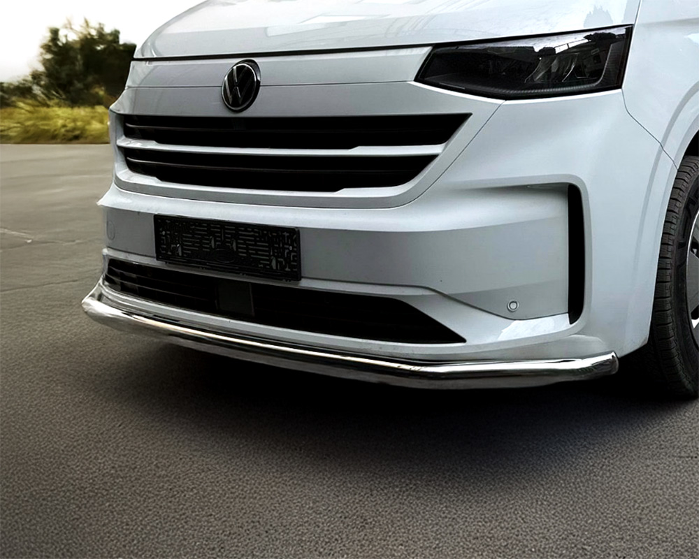 Frontrör Volkswagen Transporter T7 från 2024- och nyare tillverkade i rostfritt stål ger din bil ett robust och skyddande komplement. Ett frontrör skapar en tuffare look framtill samtidigt som det erbjuder ett extra skydd för den främre stötfångaren.