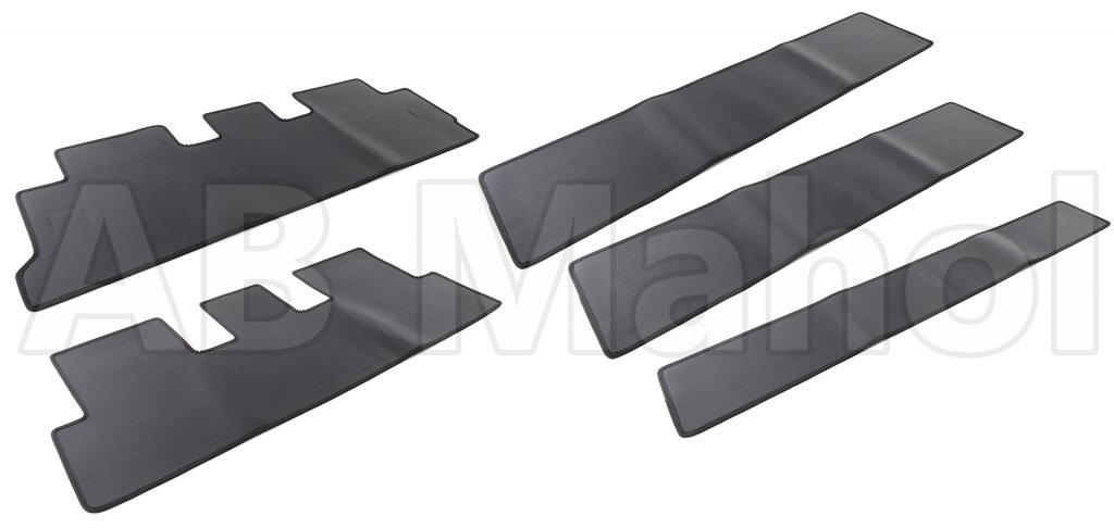 Gummimattor med låg kant, tillverkade av EPDM-gummi som förstärkts av av PP-plast för en mycket bra kvalité på mattorna. Passar mellanraden och bakre raden i VW Multivan T6.
