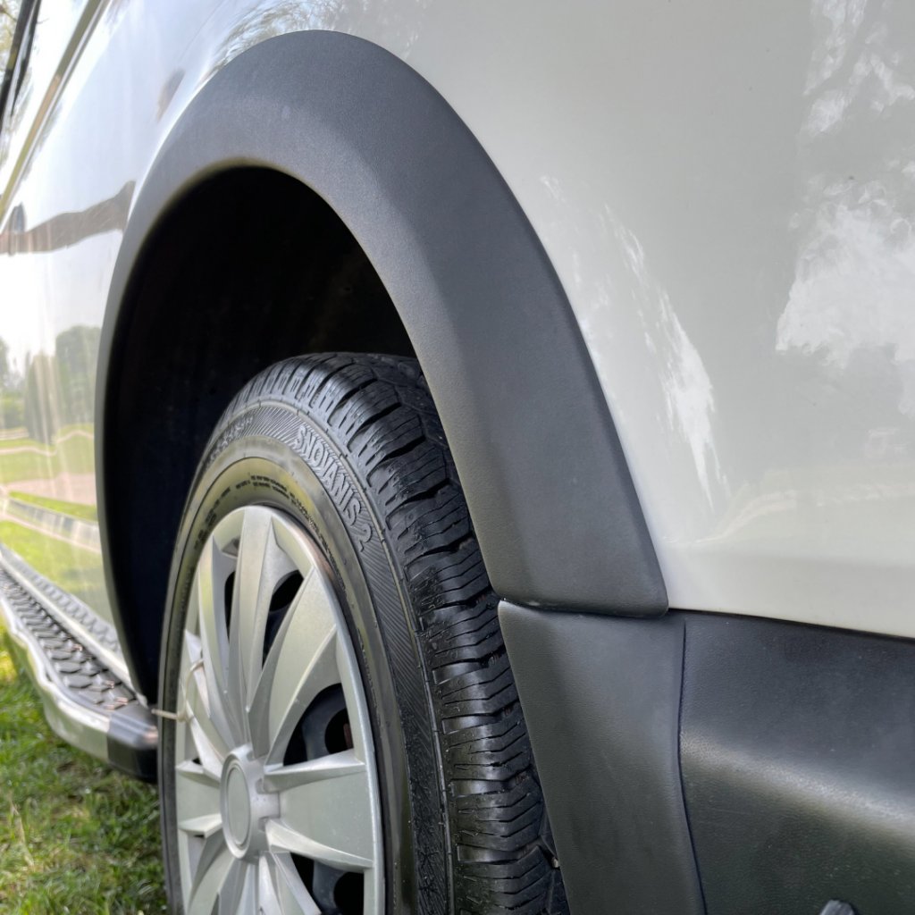 Skärmbreddare Volkswagen Transporter T5 levereras i mattsvart lackerbar yta och i komplett sats för hela bilen.